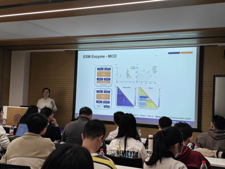 王雅婕研究员以人工智能方法精准挖掘酶序列、构建光-酶、电-酶偶联催化系统为例,介绍了深度融合人工智能、合成生物学与化学工程等多学科前沿,及其在高性能生物催化体系开发中的应用,彰显了这一跨学科研究策略为系统性优化生物催化剂的功能与效率提供了新的研究路径和可行方案。